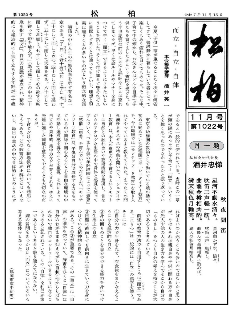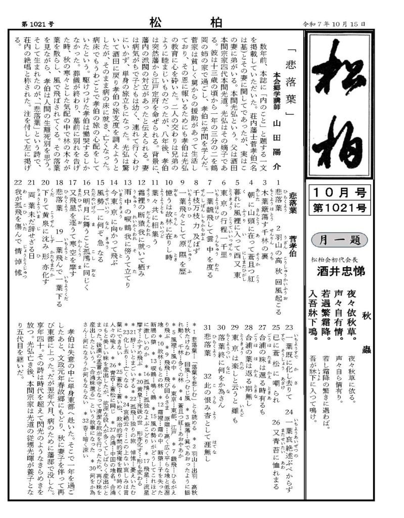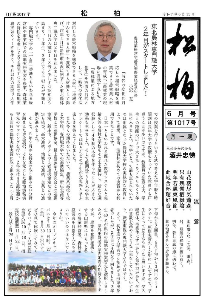 荘内松柏会会員にむけて、毎月発行しております